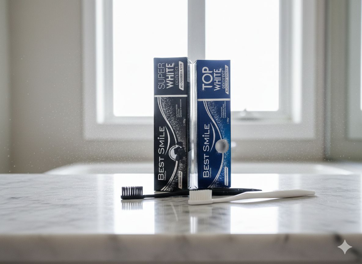 Découvrez la brillance éclatante avec Best Smile ! Formulée pour éliminer les taches et révéler un sourire plus blanc et plus éclatant, la pâte à dent Super White et Top White prend soin de vos dents tout en les protégeant. Offrez à votre sourire l’éclat qu’il mérite !