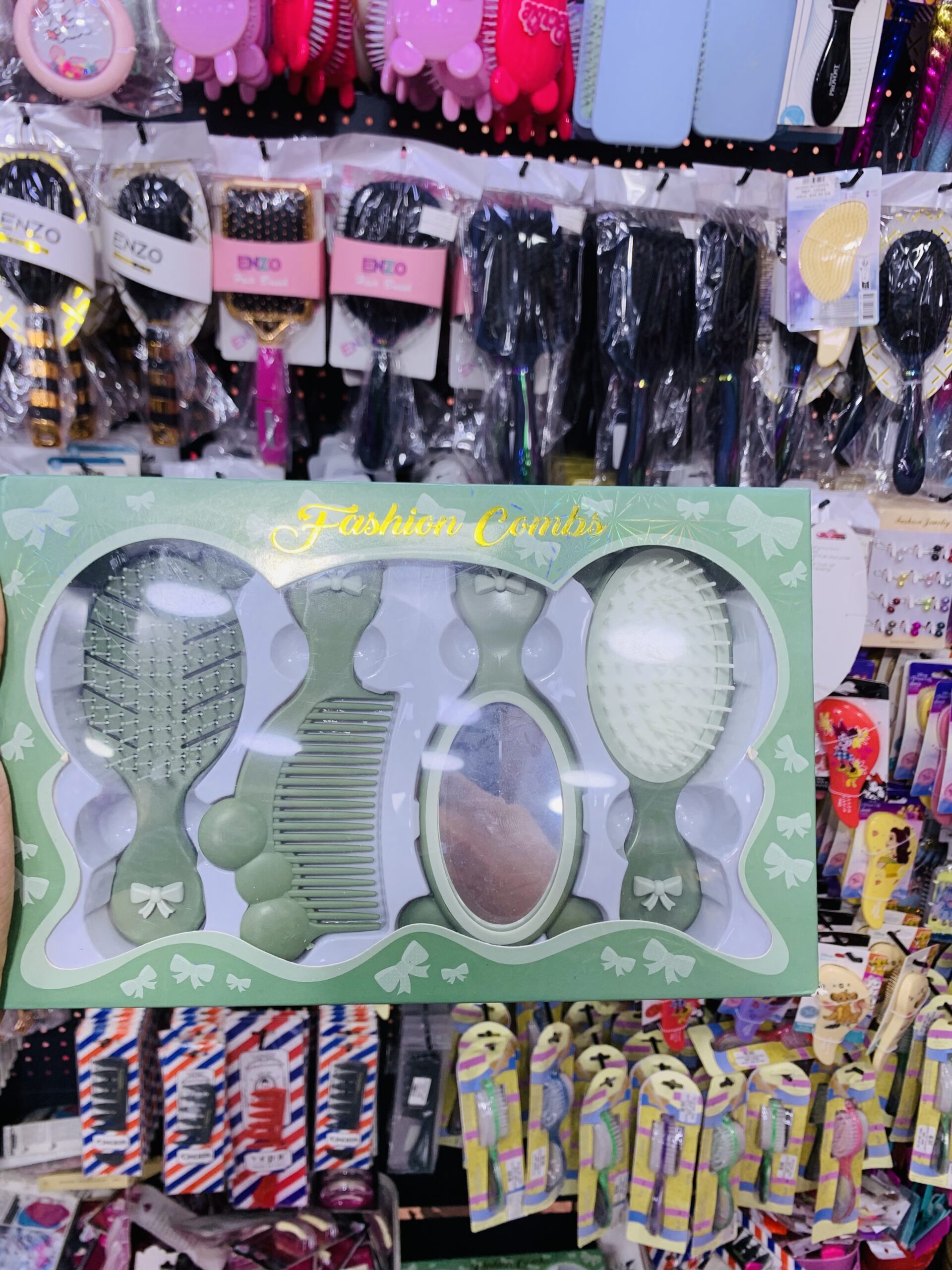 Un ensemble complet d’accessoires capillaires dans un joli coffret vert pastel, parfait pour les soins quotidiens des cheveux.