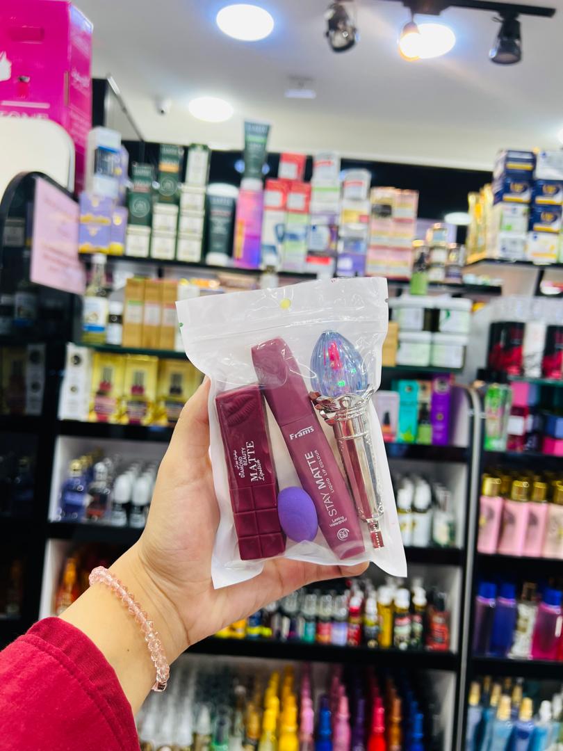 💄 Kit maquillage Stay Matte – Ruj, Beauty Blender & Gloss