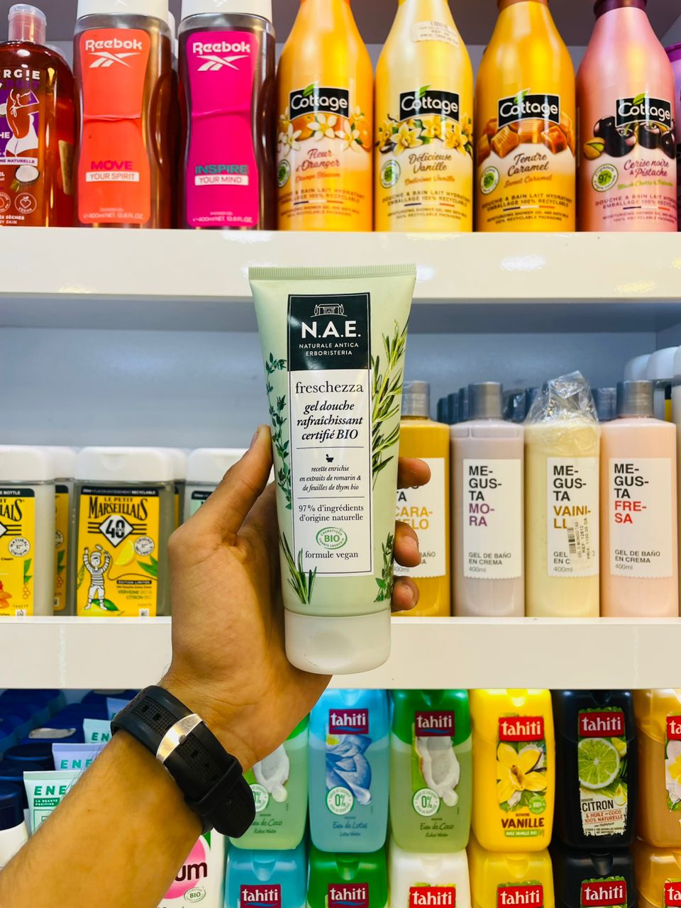 Le gel douche bio N.A.E. Fraîcheur est une véritable bouffée d’air frais pour votre peau. Avec sa formule enrichie en 97% d’ingrédients d’origine naturelle et certifiée bio, il nettoie en douceur tout en préservant l’équilibre de la peau. L’extrait de feuilles d’olivier bio hydrate, tout en procurant une sensation de fraîcheur et de légèreté à chaque utilisation.