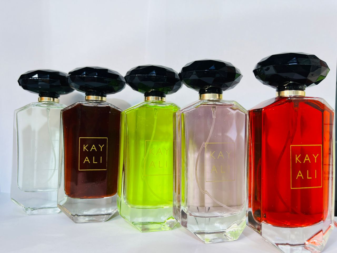 Élevez votre routine beauté avec cette collection de parfums KAY ALI, soigneusement présentée dans des flacons élégants et modernes à la forme octogonale sophistiquée. Chaque bouteille se distingue par une couleur vibrante correspondant à une fragrance unique :